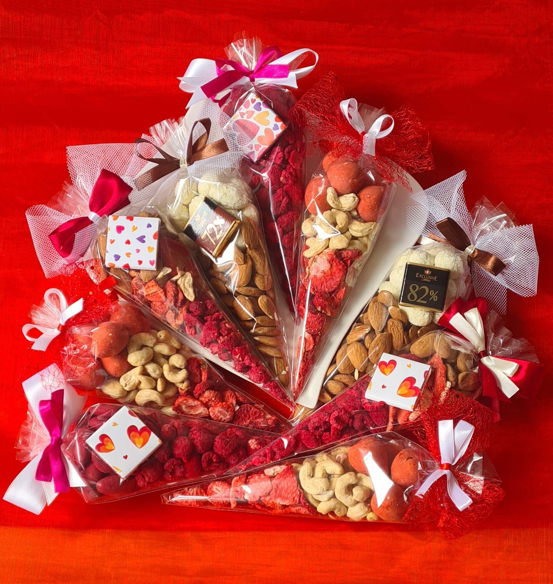 Valentýnskou nabídku samozřejmě tradičně doplní i oblíbené dárkové kornouty, malé dárečky a další tematické dobroty.