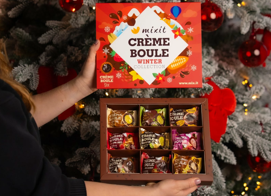 Degustační sada 9 příchutí Créme Boulí s lahodnými krémy z prémiových ingrediencí jako jsou pravá vanilka, mrazem sušené jahody, pistácie nebo Single Origin kakao z Peru. Nechybí opět vánoční LIMITKA s voňavou skořicí, hřebíčkem a badyánem ani NOVINKOVÁ boule á la VAJEČNÝ LIKÉR. Všechny Mixit Crème boule jsou bez palmového oleje a zbytečných umělých přísad. Vánoční bouleniéra bude perfektním originálním dárkem nebo zprestřením či přímo alternativou k vánočnímu cukroví.