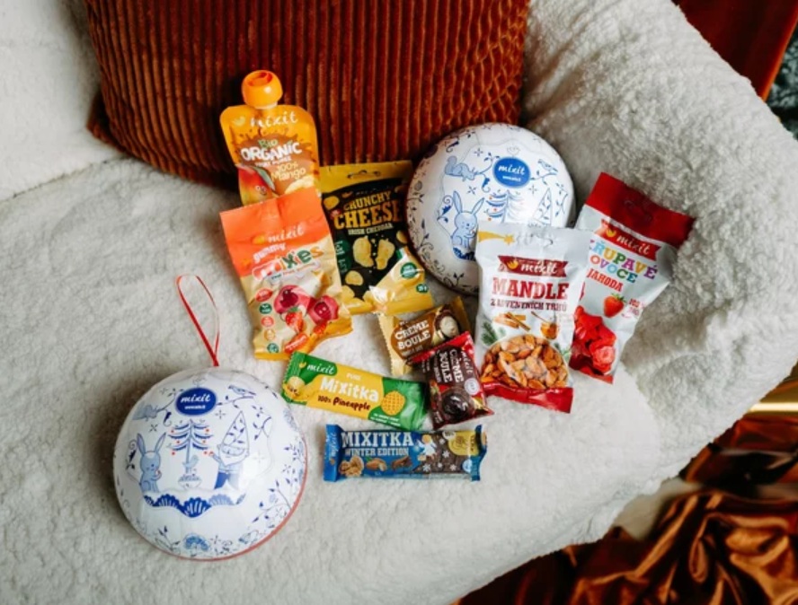 Originální ozdoba nejen na stromeček plná TOP dobrot od Mixit - sladkých i slaných. Mezi 9 hitovkami najdete lyofilizovaný čedar i křupavé ovoce, 100 % ananasovou i vánoční mixitku, oblíbené mandle z adventních trhů, nebo Mixies i dvě Créme Boule.