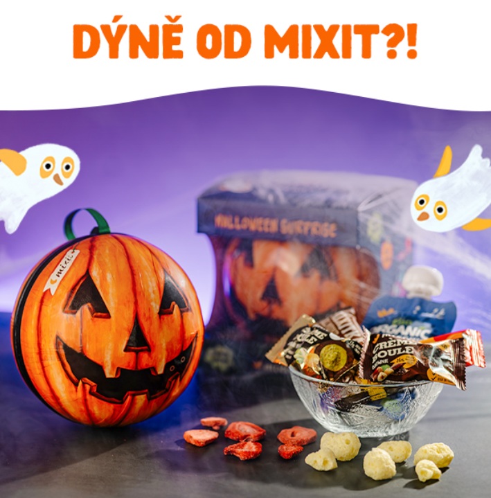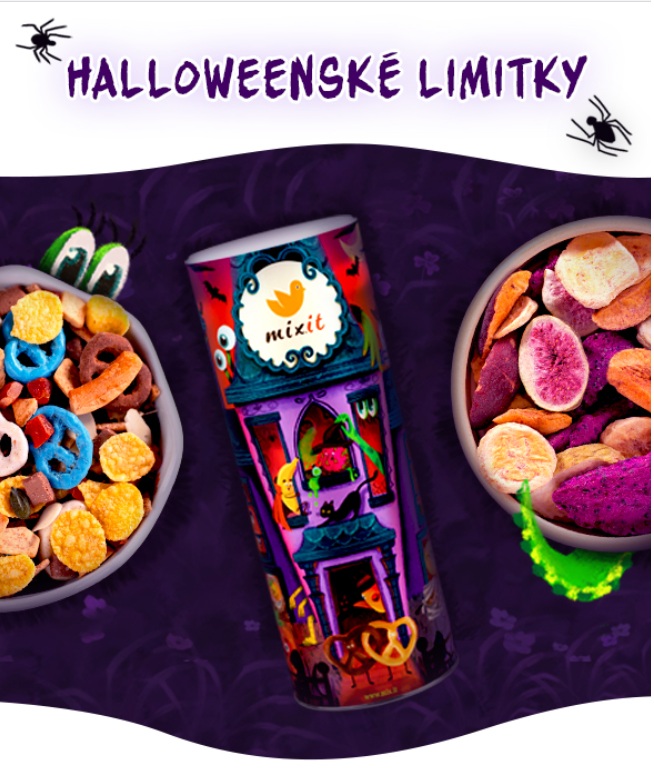 STRAŠIDELNĚ DOBRÝ MIX - limitka od Mixit plná preclíků, čokolády, lyofilizovaného ovoce a koření.