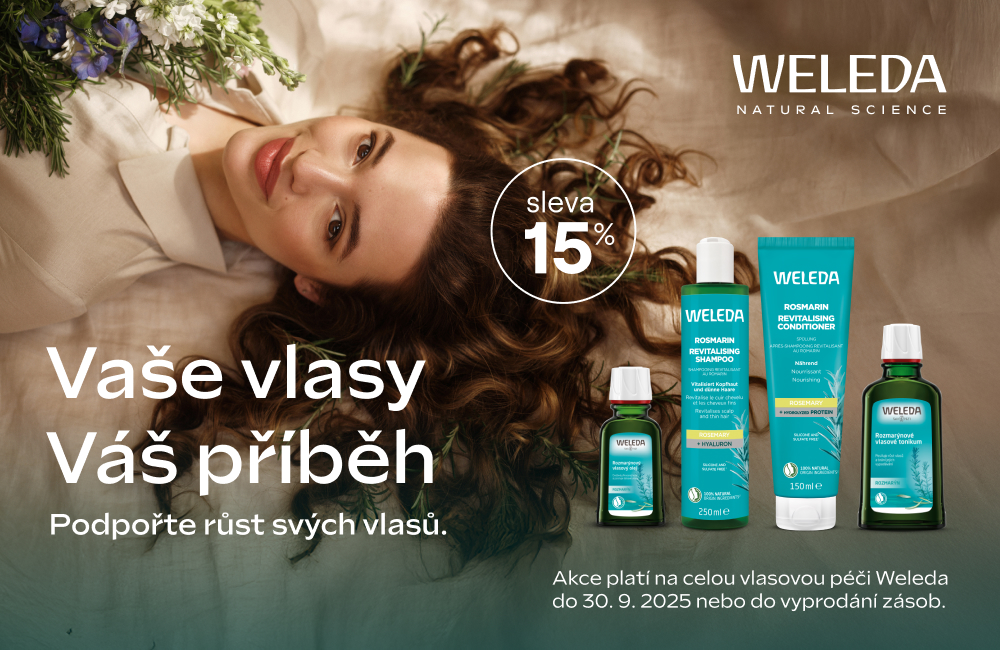 V BAZALCE BIO NYNÍ POŘÍDÍTE JAKÝKOLI PRODUKT ROZMARÝNOVÉ VLASOVÉ PÉČE WELEDA V AKCI -15 %.